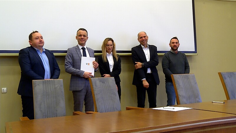 Od lewej: Firma Relpol S.A.: Piotr Stołpiak - Product Manager, Bartłomiej Szydłowski - Dyrektor Handlu i Marketingu , prof. Justyna Patalas-Maliszewska - Prorektor ds. Współpracy z Gospodarką UZ, dr hab. inż. Sławomir Kłos, prof. UZ z Instytutu Inżynierii Mechanicznej UZ oraz mgr Karol Dąbrowski - Dyrektor CPiTT UZ; fot. J. Jackowski
