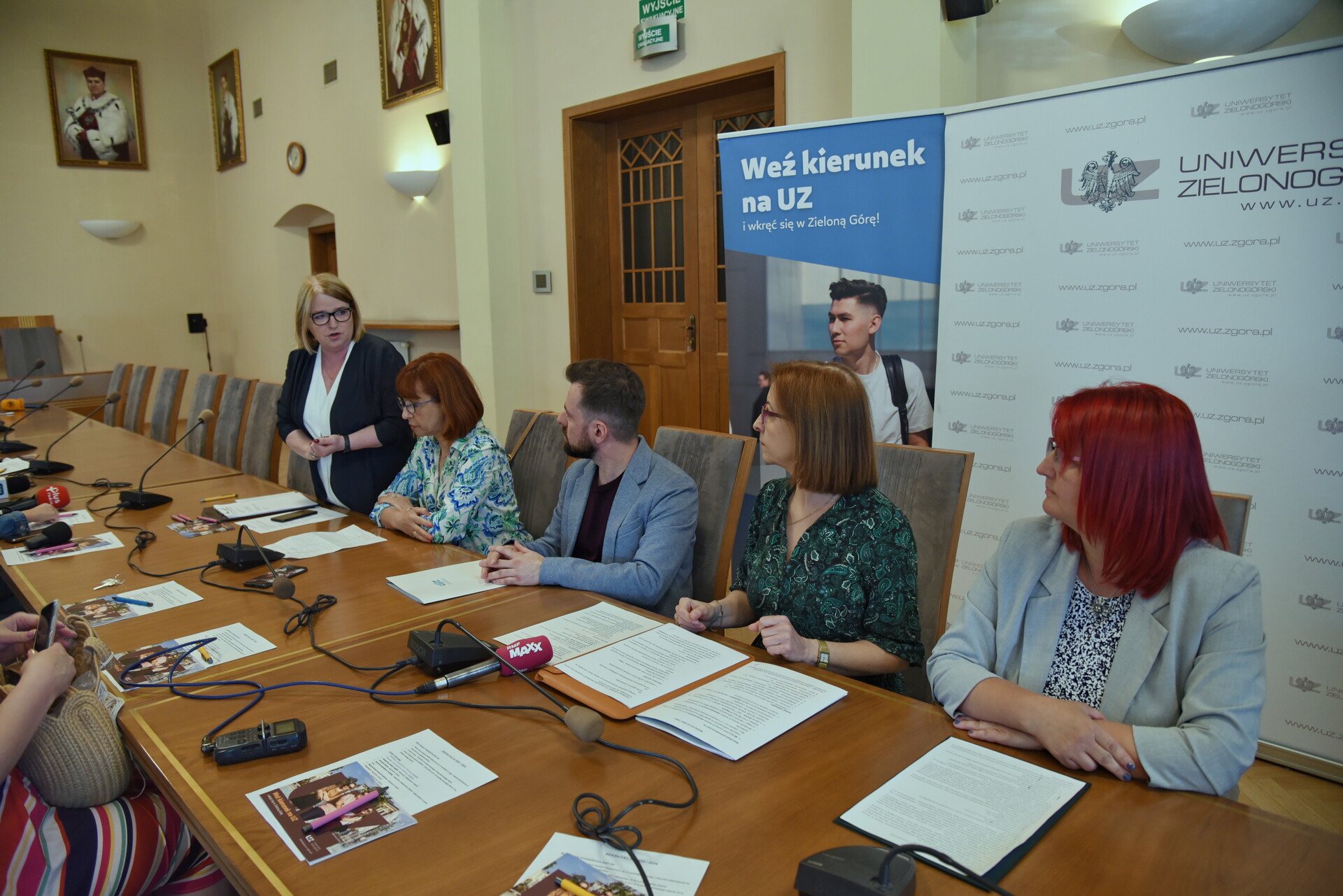 Konferencja prasowa - Rekrutacja 2023/24: mgr Ewa Sapeńko, dr Ewa Skorupka, dr Arkadiusz Tyda, dr hab. Barbara Literska, prof. UZ, dr hab. inż. Sylwia Myszograj, prof. UZ, fot. K. Adamczewski