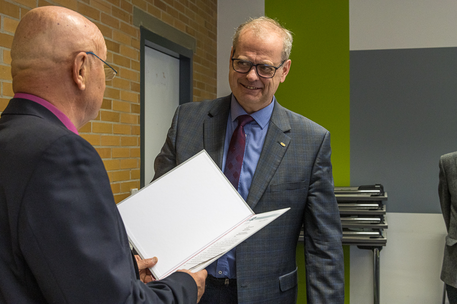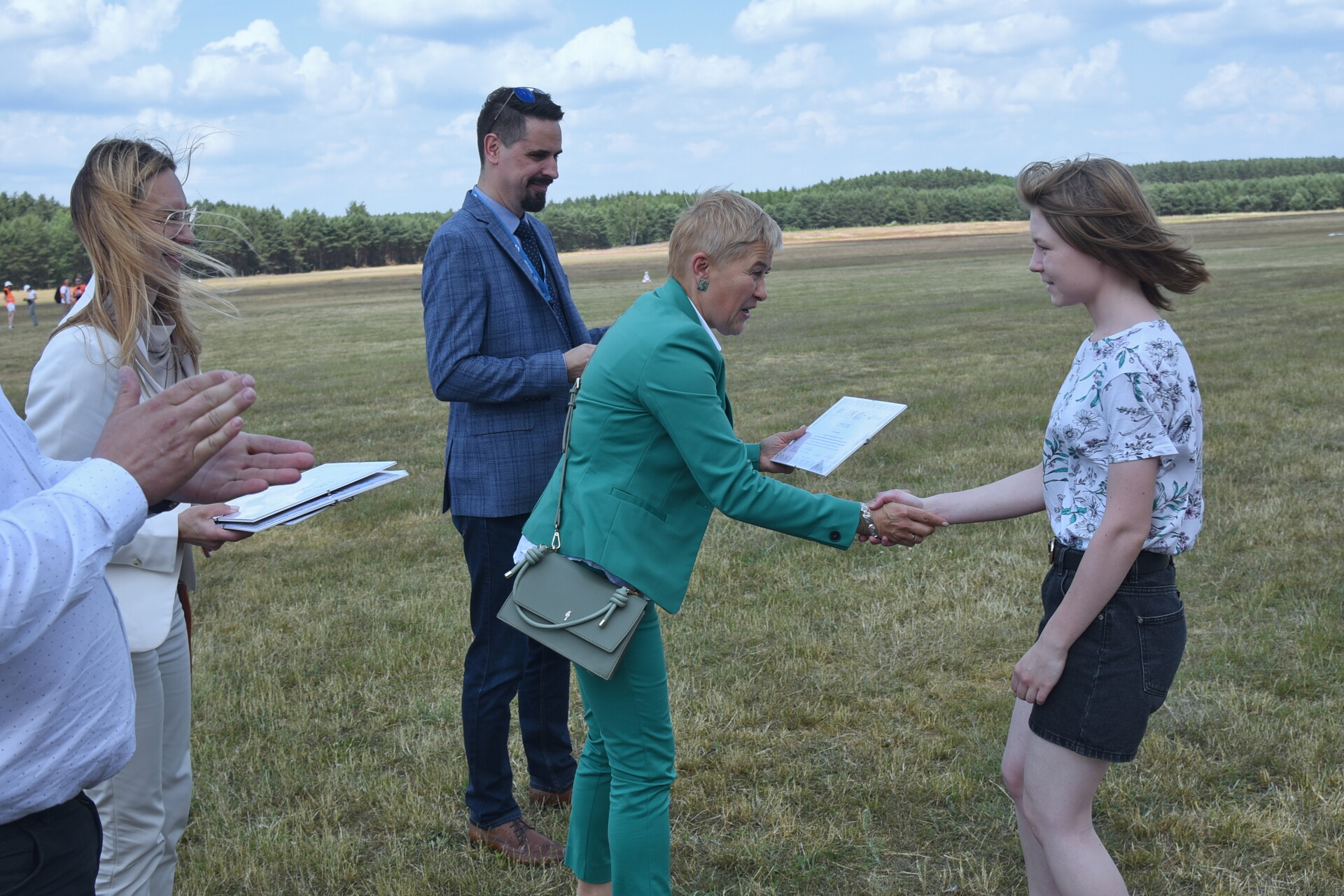 Dr hab. inż. Maria Mrówczyńska, prof. UZ - Prorektor ds. Współpracy z Gospodarką UZ oraz dr Sławomir Kotylak - Dyrektor Departamentu Infrastruktury i Komunikacji Urzędu Marszałkowskiego Województwa Lubuskiego wręczają nagrodę, fot. K. Adamczewski