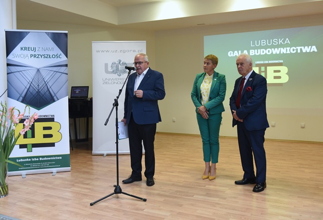 dr hab. inż. Maria Mrówczyńska, prof. UZ – prorektor ds. współpracy z gospodarką UZ, Zenon Bambrowicz, prezes Lubuskiej Izby Budownictwa, Tadeusz Glapa V-ce Przewodniczący Lubuskiej Okręgowej Izby Inżynierów Budownictwa; fot. K Adamczewski