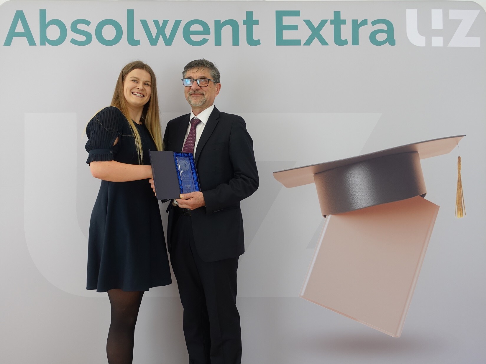 Inż. Weronika Dylewicz oraz Dziekan Wydziału Mechanicznego - dr hab. inż. Władysław Papacz, prof. UZ; fot. M. Leśniak