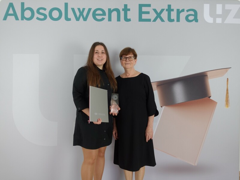Od lewej: lic. Joanna Nawlicka i Dziekan Wydziału Humanistycznego - dr hab. Małgorzata Łuczyk, prof. UZ; fot. M. Leśniak