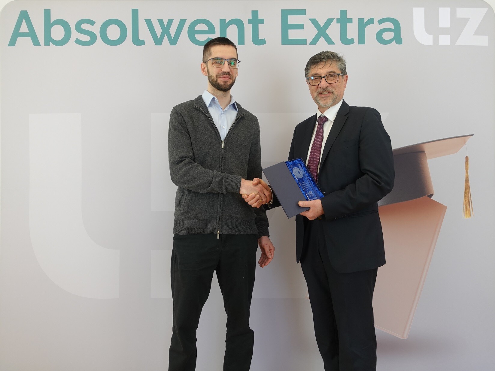 Mgr inż. Karol Kołtowski oraz Dziekan Wydziału Mechanicznego - dr hab. inż. Władysław Papacz, prof. UZ; fot. M. Leśniak