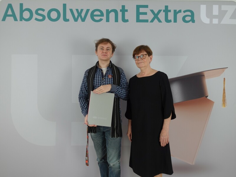 Od lewej: mgr Vadzim Antsipau i Dziekan Wydziału Humanistycznego - dr hab. Małgorzata Łuczyk, prof. UZ; fot. M. Leśniak