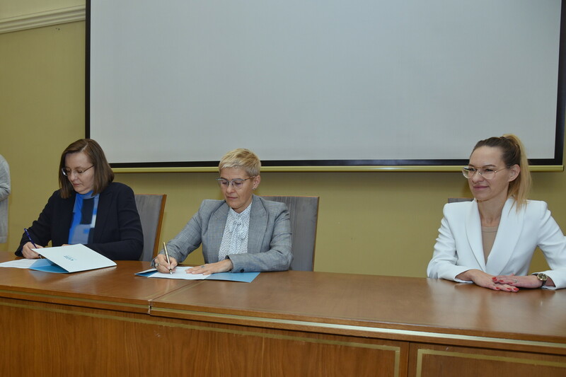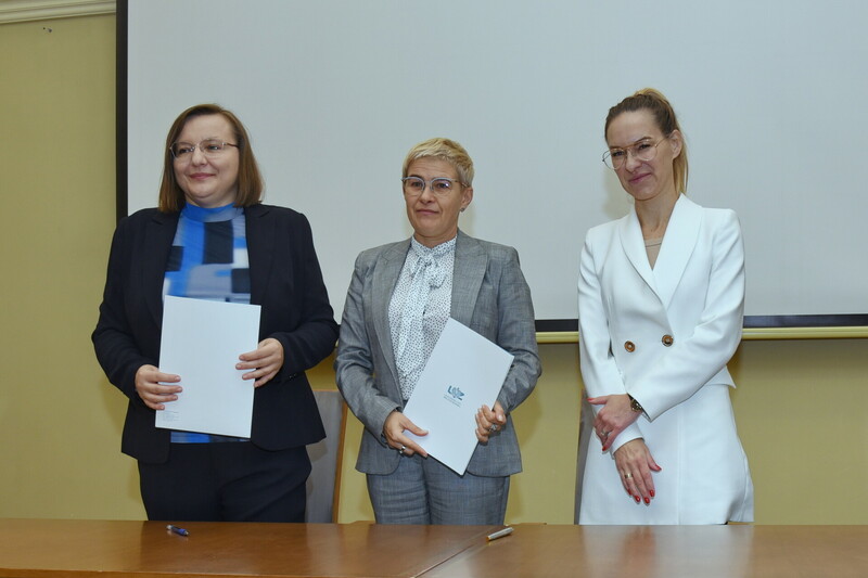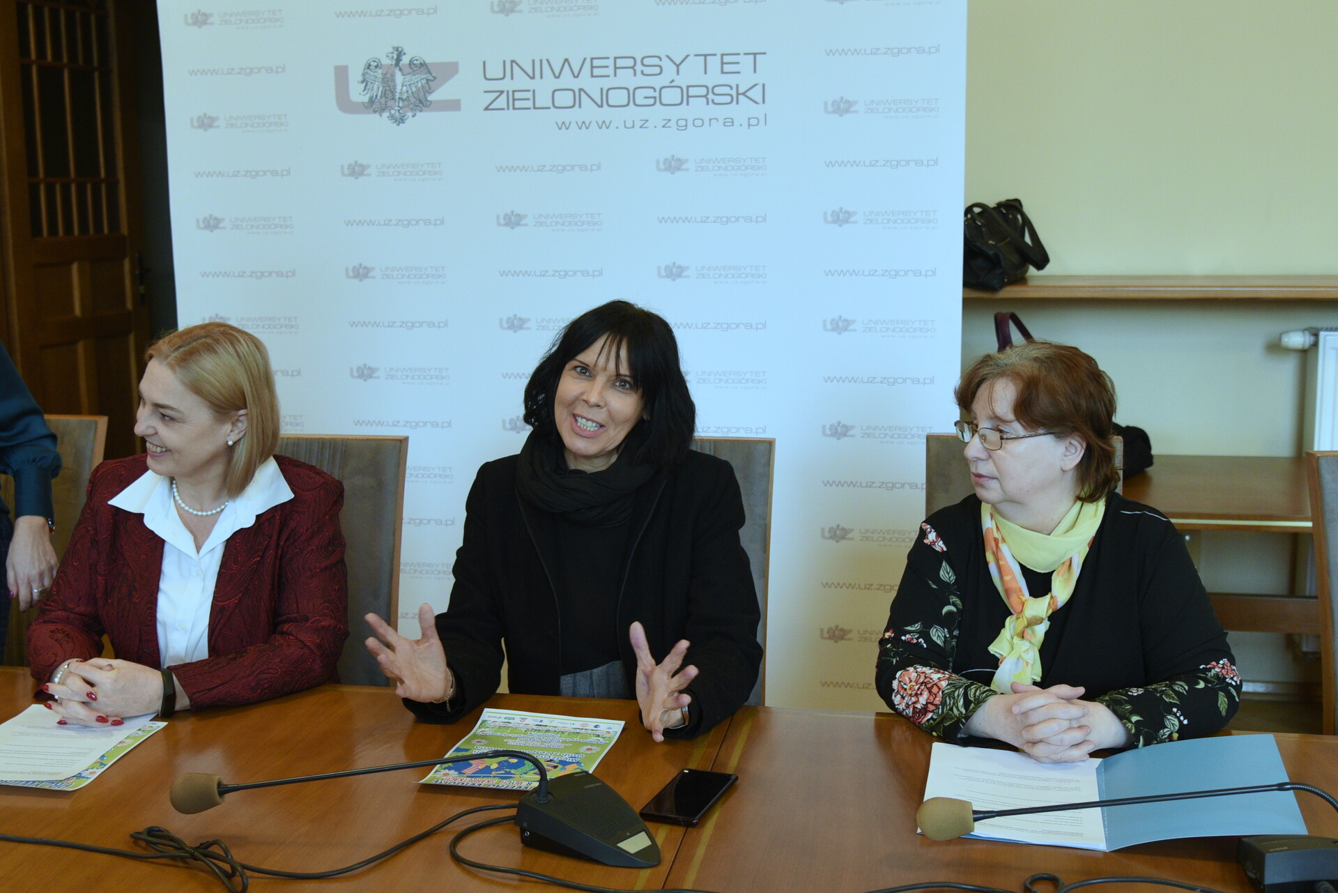Od lewej: Marzena Pulik-Sowińska - dyrektor Ośrodka Doskonalenia Nauczycieli, dr inż. Patrycja Łychmus, prezes Stowarzyszenia Syndrom na Rzecz Osób z Zespołem Downa, dr hab. Ewa Skorek, prof. UZ, kierownik Katedry Patologii i Rehabilitacji Mowy UZ; fot. K. Adamczewski