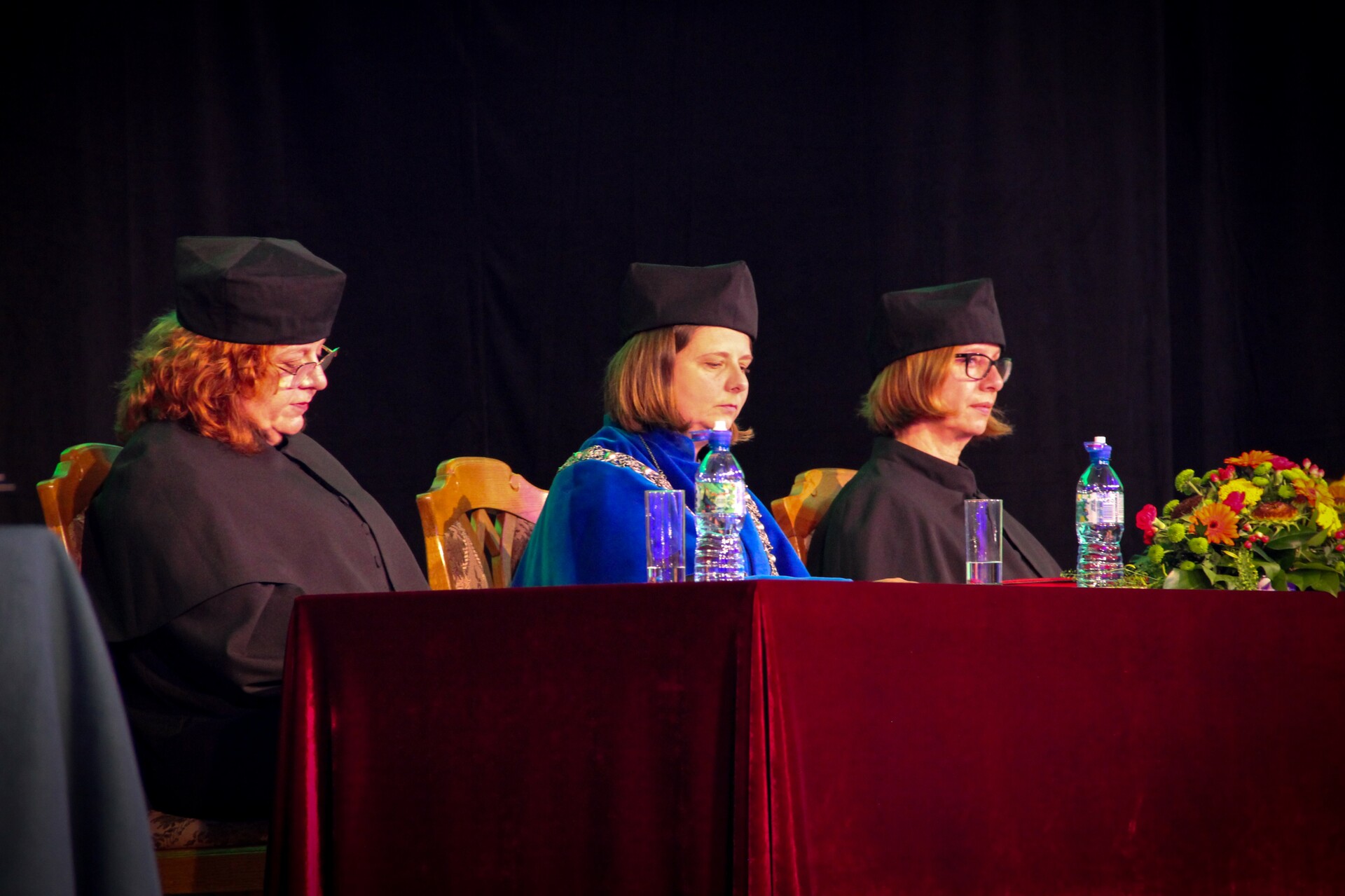 Od lewej siedzą: Prodziekan ds. Klinicznych - dr n. med. Róża Poźniak-Balicka, Dziekan Wydziału Lekarskiego i Nauk o Zdrowiu - dr hab. n. med. Agnieszka Ziółkowska, prof. UZ oraz Prodziekan ds. Studiów i Studentów - dr hab. Magdalena Gibas-Dorna prof. UZ; fot. J. Czarnecka